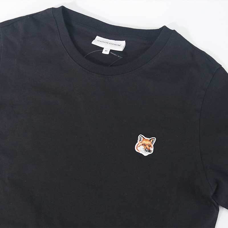 メゾンキツネ MAISON KITSUNE Tシャツ レディース 半袖 FOX HEAD PATCH クルーネック ブラック XS