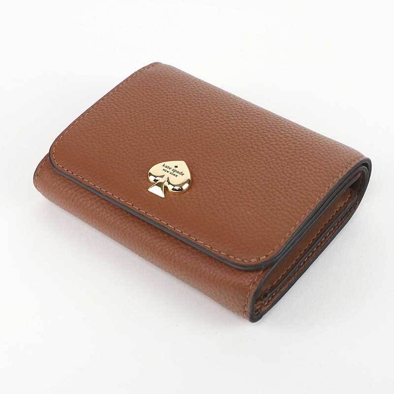 kate spade new yorkの「ケイラ」シリーズ二つ折り財布。上質なペブルドレザーを使用し、傷が目立ちにくく長く愛用できます。L字ファスナー仕様で小銭の出し入れもしやすく、コンパクトながら収納力を備えた実用的なアイテムです。