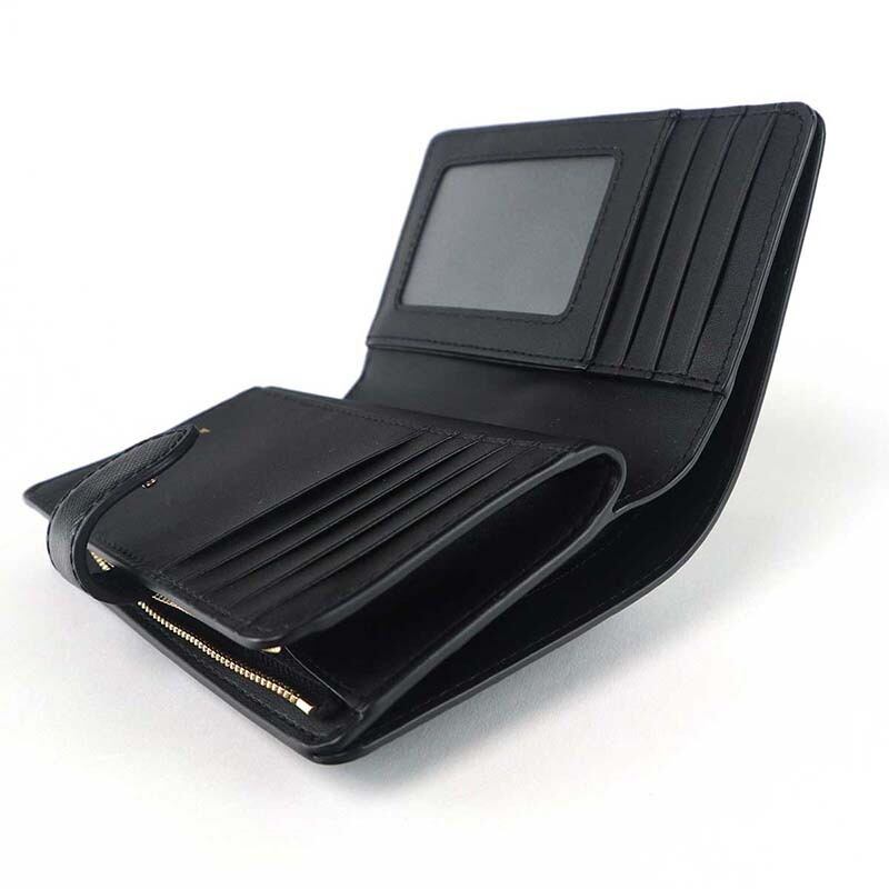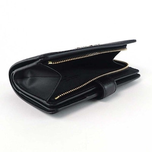 仕様 :開閉 ホック式、外側 ファスナー付小銭入れ×1、内側 札入れ×1、カードポケット×8、オープンポケット×4、クリアポケット×1